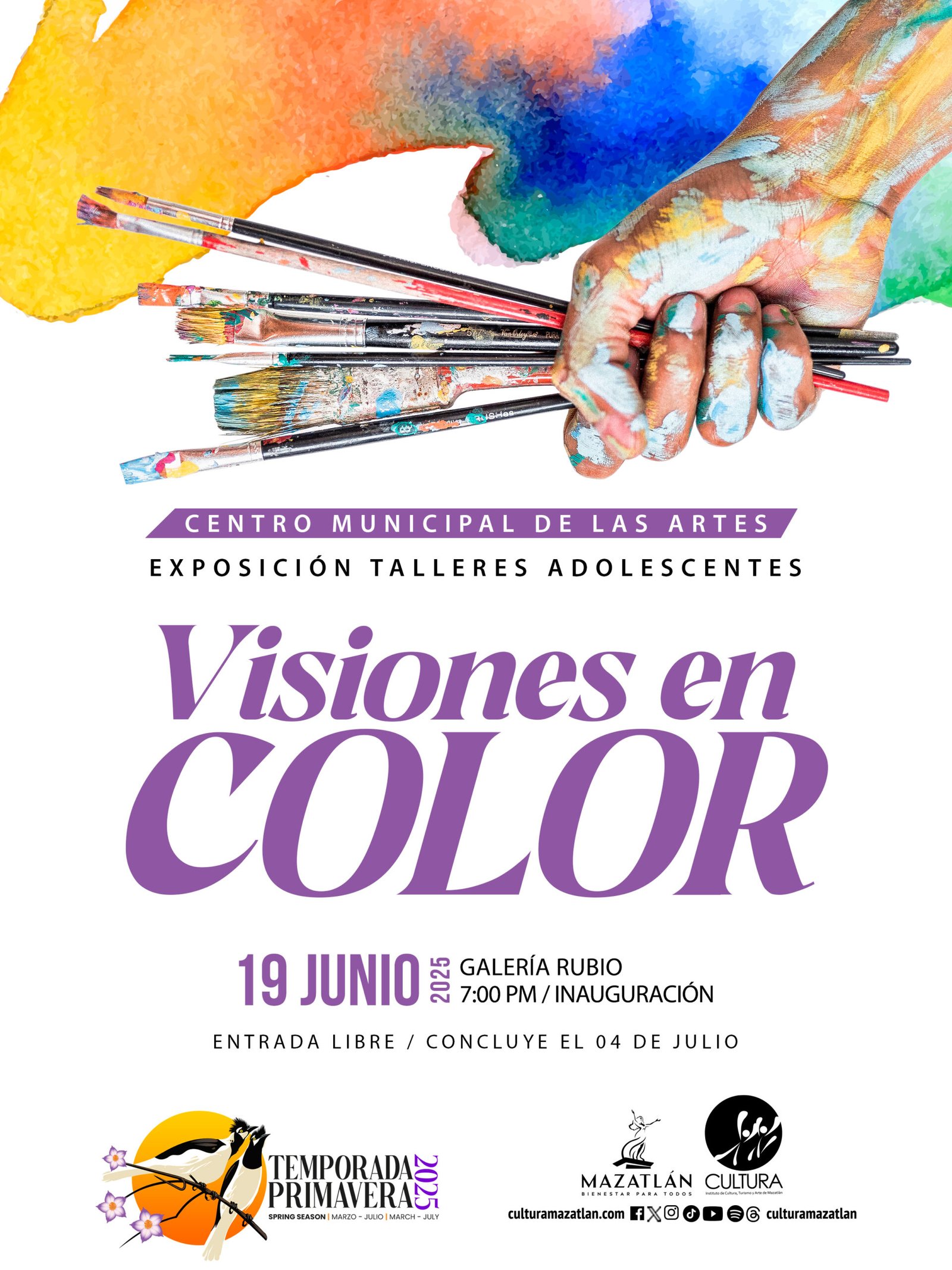 Visiones en Color», exposición que muestra el talento y la creatividad de los alumnos adolescentes de los talleres de Artes Plásticas del Centro Municipal de las Artes de Cultura se inaugura el jueves 19 de junio a las 7:00 pm en la Galería Rubio.